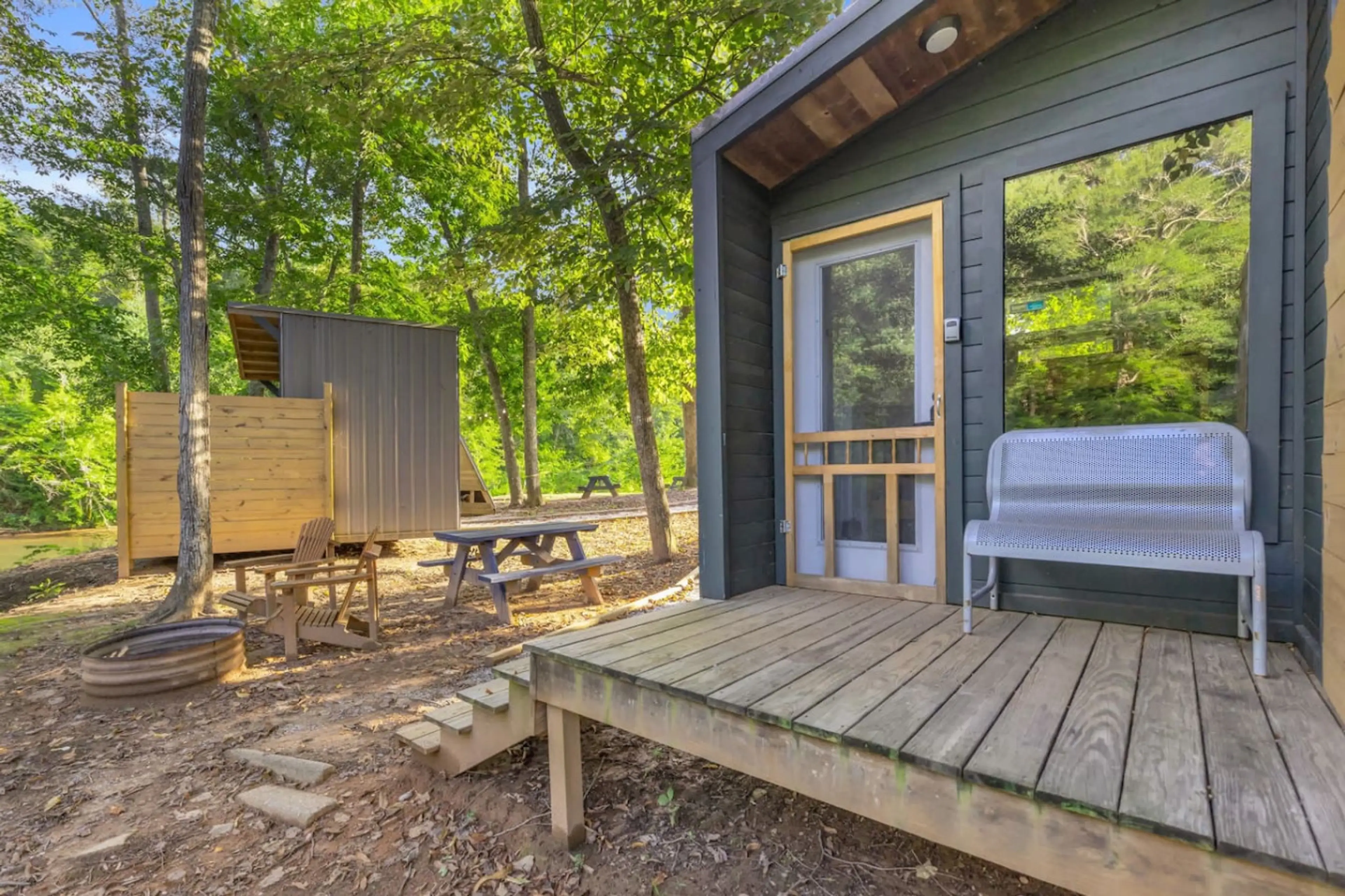 Riverfront Camping Pod, W/ Bath House, Min to DT